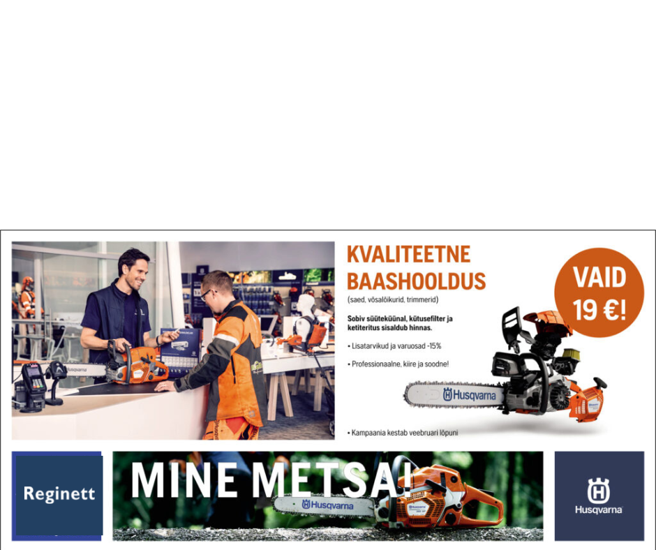 Käes on talv ja metsatööde hooaeg on täies hoos. Kas su praegune saag vajab hooldust või sootuks uue vastu välja vahetamist? Hea uudis on see, et mõlema variandi puhul saame sulle abiks olla. Nimelt veebruari lõpuni saad meie hooldekojast saele baashoolduse vaid 19 euro eest. Küünal, kütusefilter ja ketiteritus on seejuures sulle päris TASUTA!