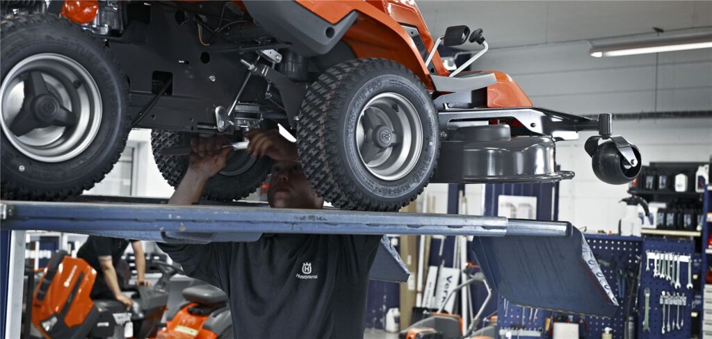 Kui õlivahetusega saab enamik tehnikaomanikest ise hakkama, siis tera teritamiseks ja balansseerimiseks oleks mõistlik juba hooldekotta pöörduda. Siin kontrollivad meie kogenud spetsialistid üle ka masina üldise tervise. Vajadusel puhastatakse õhufilter, vahetatakse süüteküünal, käiakse üle mutrid-poldid, kontrollitakse trossid ja rattad. Murutraktoril ja raideril kontrollitakse rehvirõhk ning sildade olukord.
